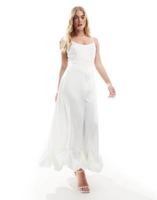 Vila Bridal satin cami maxi dress with stitch detail hem in white