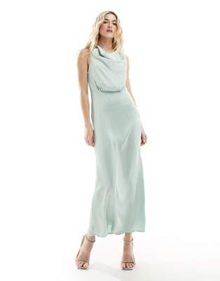 Vila Bridesmaid cowl neck maxi dress in light green