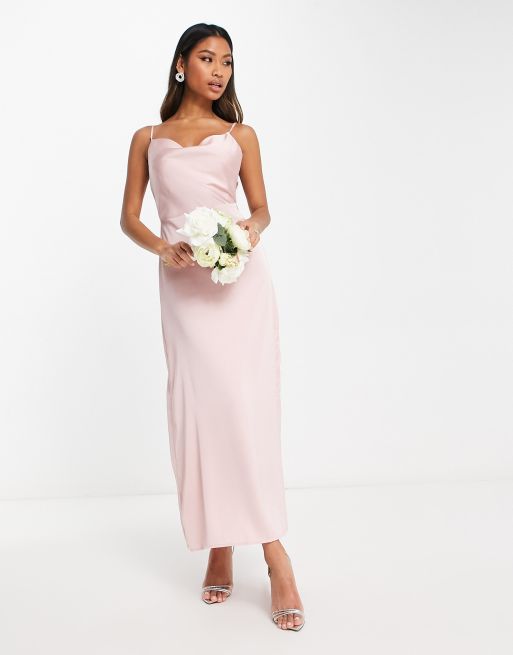 Vila Bridesmaid satin cowl neck maxi dress in pink