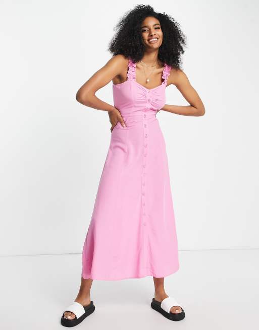Vila cami maxi dress with button front in pink