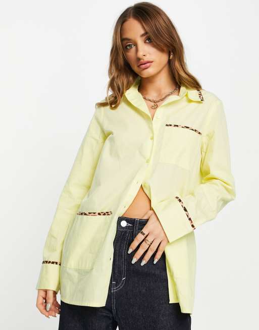Vila exclusive oversized shirt with leopard print tipping in pastel yellow