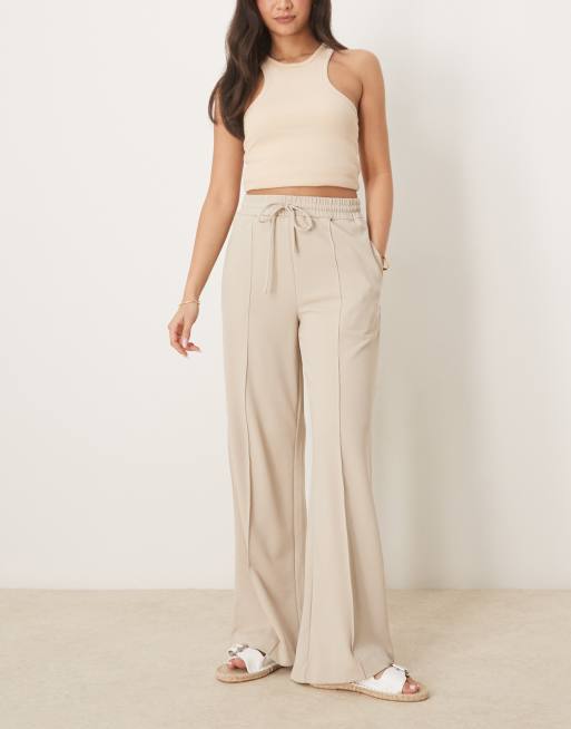 Vila high waist wide leg seam front trouser in beige