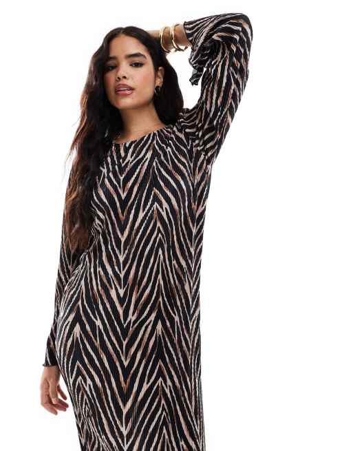 Vila plisse maxi dress with wide sleeves in zig zag animal print
