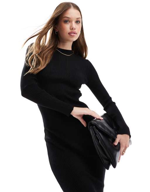 Vila ribbed knitted bodycon midi dress in black