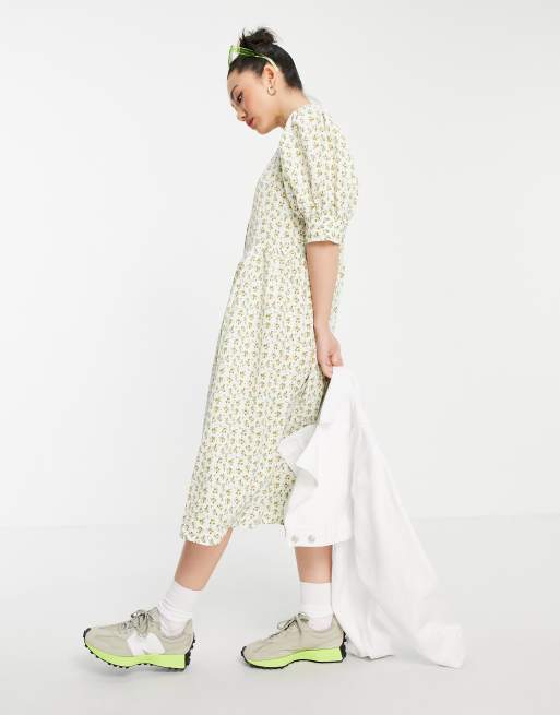 Vila textured floral maxi dress with volume sleeve