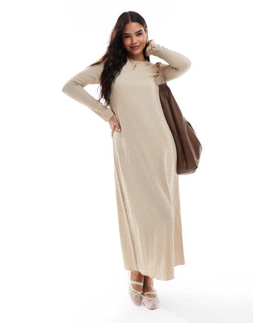 Vila textured long sleeve maxi dress in cream