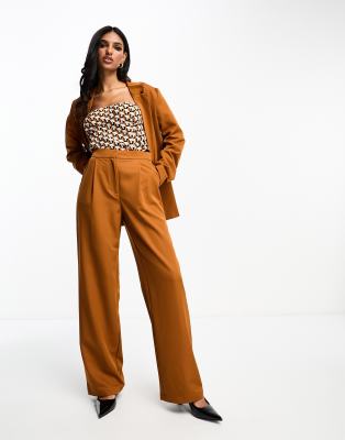 Vila textured pleat front wide leg trouser co-ord in rust