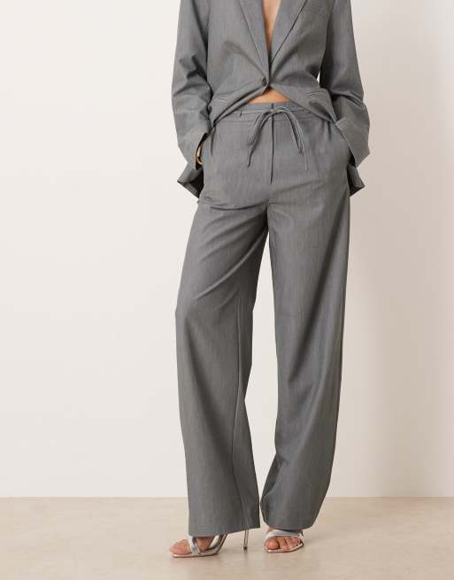Vila tie waist wide leg tailored trouser co-ord in medium grey melange