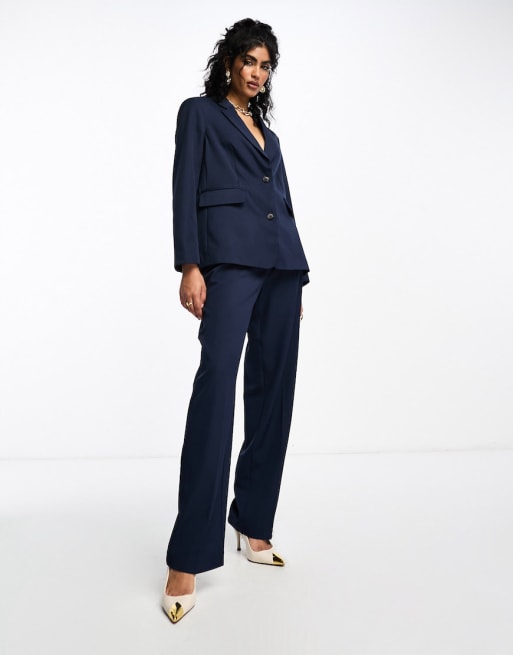 Vila twill tailored oversized blazer and wide leg trouser co-ord in navy