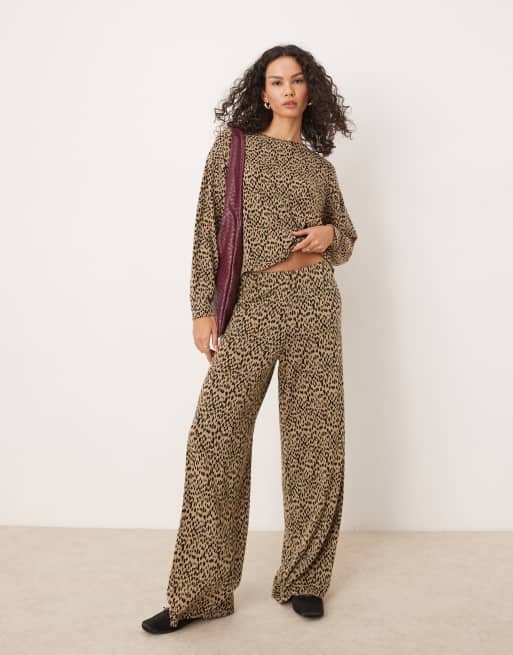 Vila wide leg super soft knit trouser co-ord in mini leopard print