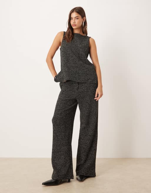 Vila wide leg textured glitter trousers co-ord in black