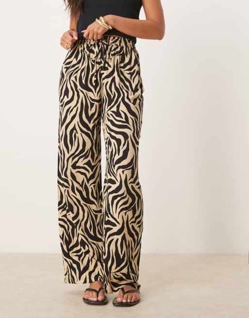 Vila zebra print wide leg trousers in off white
