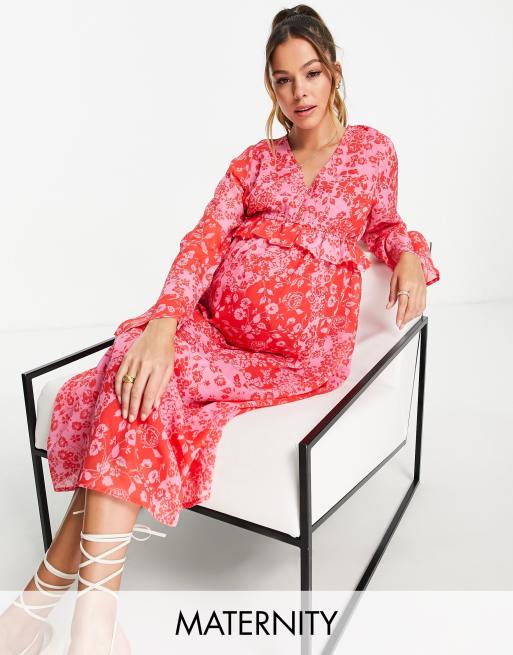 Violet Romance Maternity frill midi dress in floral print