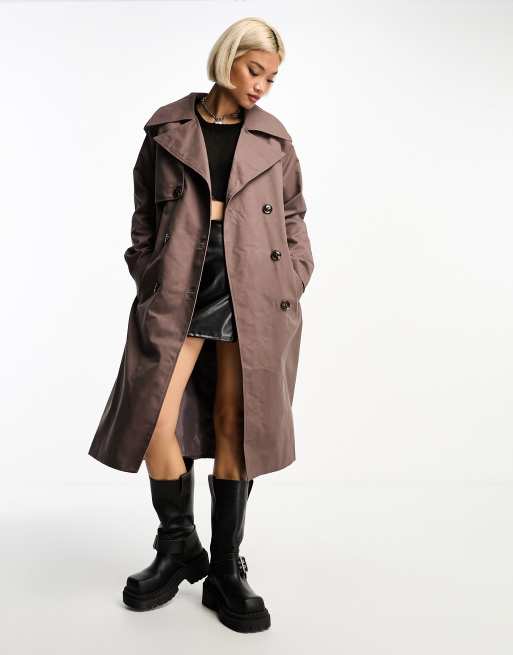 Violet Romance belted trench coat in taupe