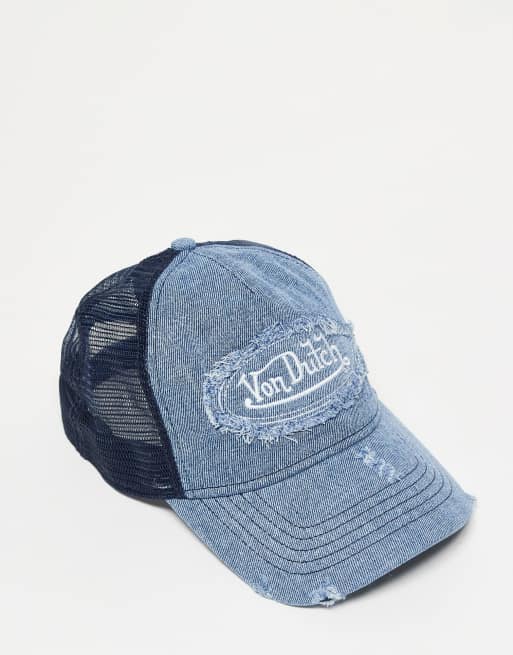 Von Dutch distressed denim trucker cap in blue