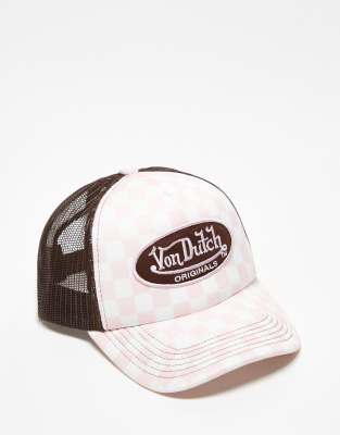Von Dutch Tampa trucker cap in pink checkerboard print - exclusive to ASOS
