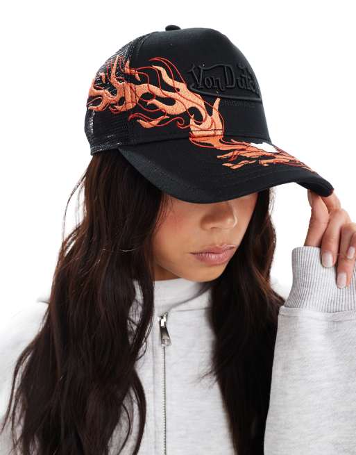 Von Dutch Tribeca flame trucker cap in black