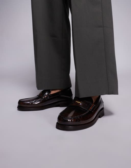Walk London Dalston penny loafer in brown smooth leather