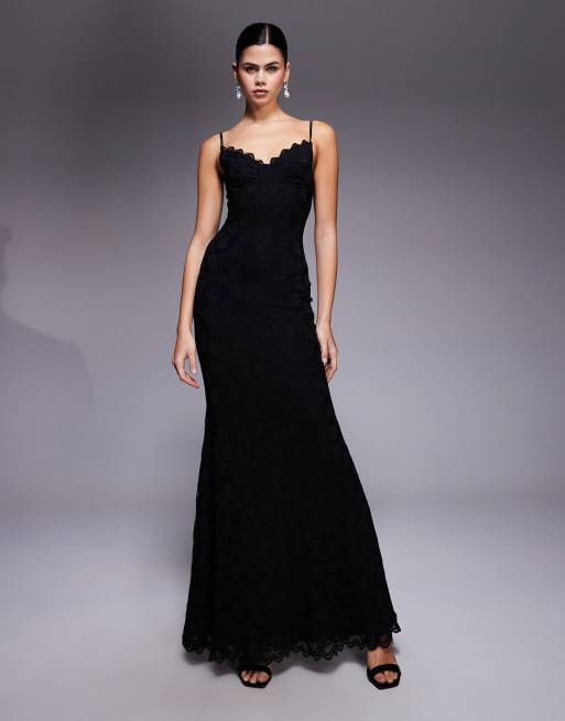Wanderdoll Leah lace cami cup detail maxi dress in black