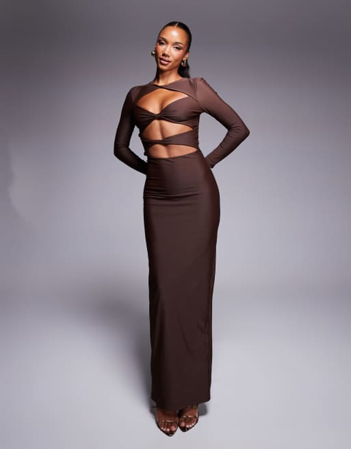 Wanderdoll Stassie exclusive cut out bodycon maxi dress in chocolate