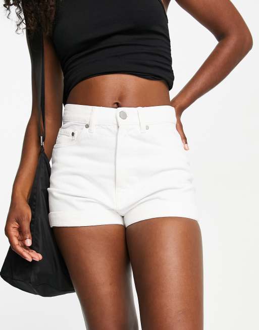 Waven high rise denim shorts with turn up hem in white