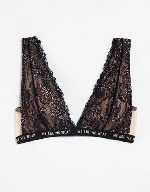 We Are We Wear Fuller Bust lace bralette with logo detail band in black