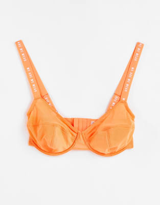We Are We Wear Fuller Bust mesh sheer balconette bra in orange - ORANGE