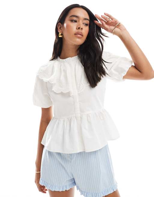 Wednesday Girl's collared cotton puff sleeve blouse in white