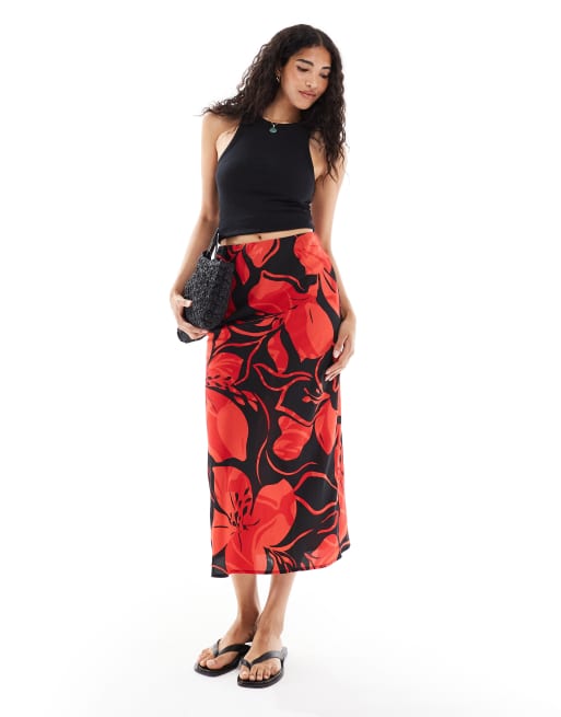 Wednesday's Girl bold bloom bias cut midaxi skirt in red