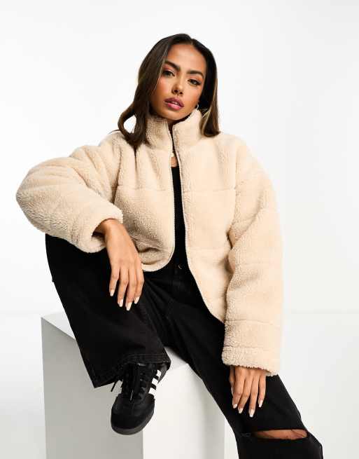 Wednesday's Girl borg funnel neck puffer jacket in cream