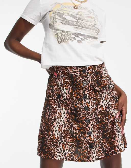 Wednesday's Girl button through mini a-line skirt in grunge leopard