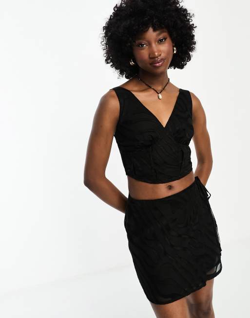 Wednesday's Girl devore zebra bustier corset top co-ord in black