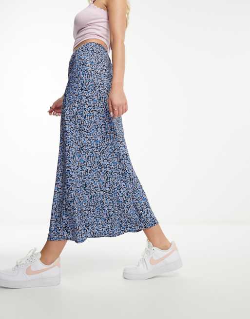 Wednesday's Girl ditsy floral midi skirt in blue