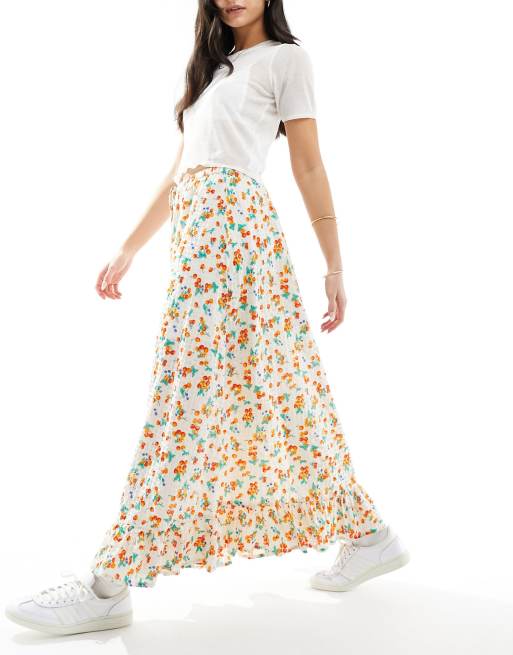 Wednesday's Girl ditsy floral ruffle edge midaxi skirt in multi