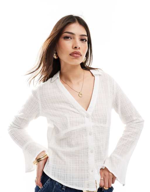 Wednesday's Girl gauzey open collar fitted shirt in white