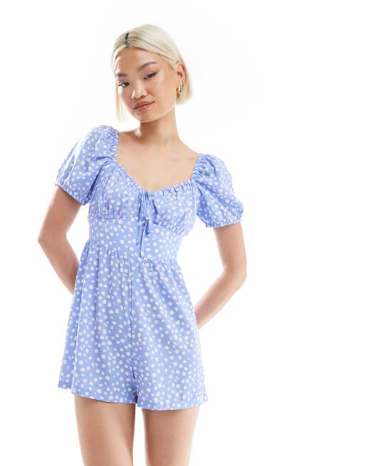 Wednesday's Girl milkmaid playsuit in blue