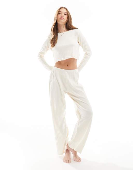 Wednesday's Girl pointelle loose fit pyjama set in cream