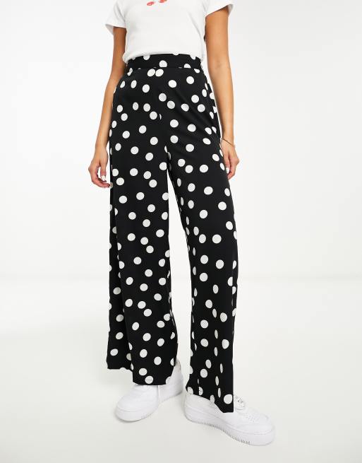 Wednesday's Girl polka dot wide leg trousers in black