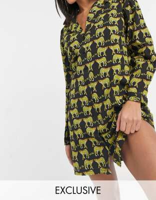 Wednesday's Girl relaxed pyjama night dress in tiger print