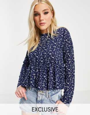 Wednesday's Girl relaxed smock top with peplum hem in ditsy floral print