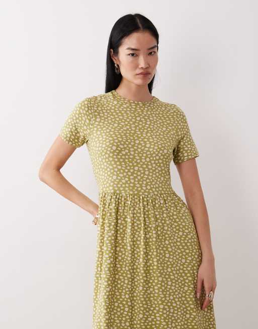 Wednesday's Girl short sleeve midaxi smudge spot print in green