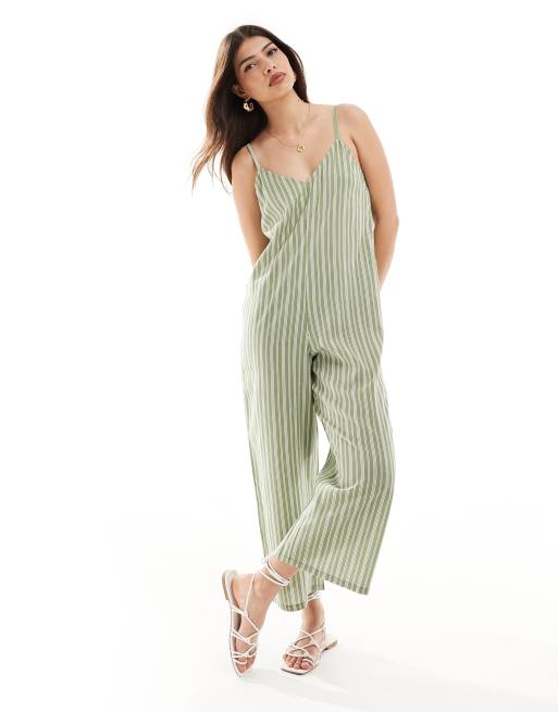 Wednesday's Girl striped romper jumpsuit in sage and white