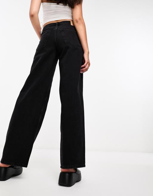 Weekday Ample low waist loose fit straight leg jeans in black