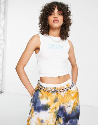 Weekday Bestie cropped tank top with mesmerise logo in white