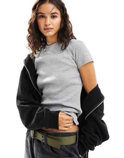 Weekday Close fitted t-shirt in grey melange