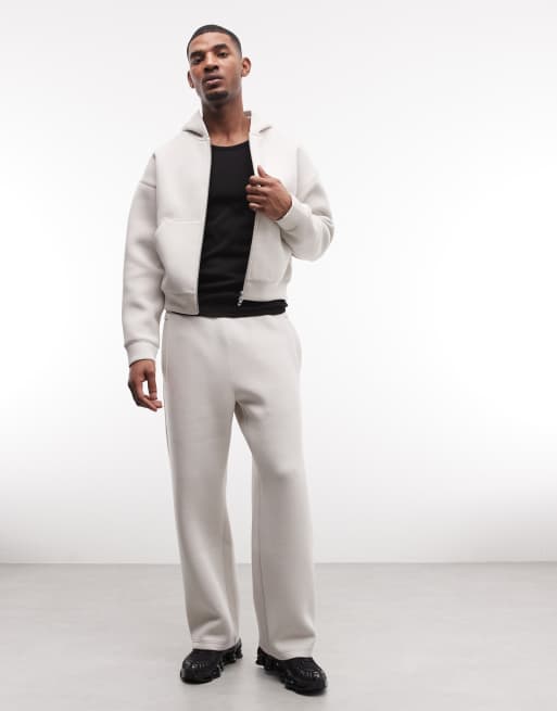 Weekday co-ord scuba-style fabric wide leg joggers in off-white