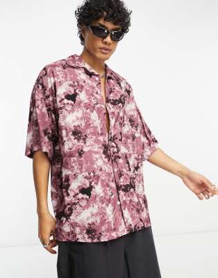 Weekday coffee oversized tie dye printed shirt in burgundy