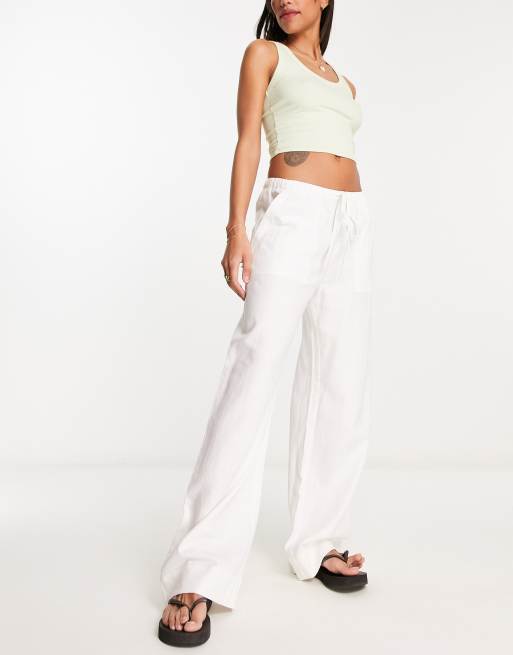 Weekday Cosmo cargo linen trousers in white
