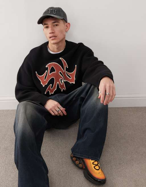 Weekday Cypher oversized jumper with red jacquard graphic in black