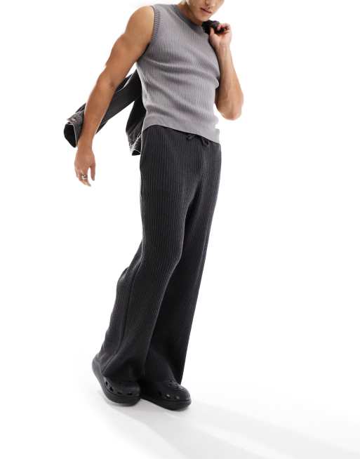 Weekday Darwin loose fit knitted trousers in dark grey melange